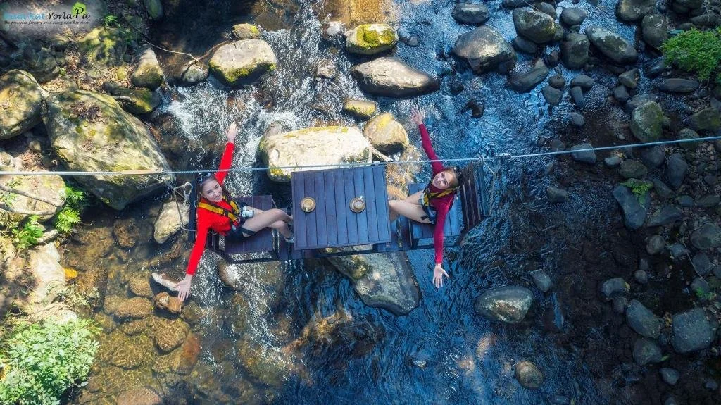 You can also stay nearby at the Namkat Yorla Pa Resort a 5-star experience with spa facilities, a swimming pool with a view, fitness center, sun terrace, and lush gardens. You can sit by the river, eat on a suspension bridge over the river, enjoy fresh food from the garden or relax in the hot tub.
