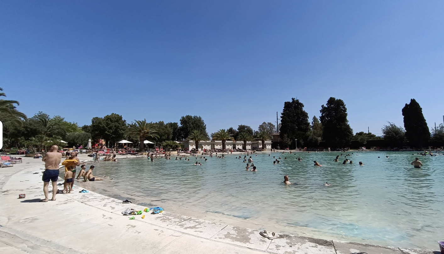 The much bigger, long pool had colder and colder water the farther you would swim/go. Surrounded by some shady trees. A magnificent stretch of water with four large pools ranging from 42°C to 30°C rich in mineral properties.