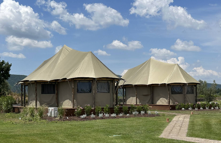 Nearby Amenities: ★★★★★ (5/5) - Glamping tents, a high-end spa, and an excellent restaurant make it a perfect weekend retreat.